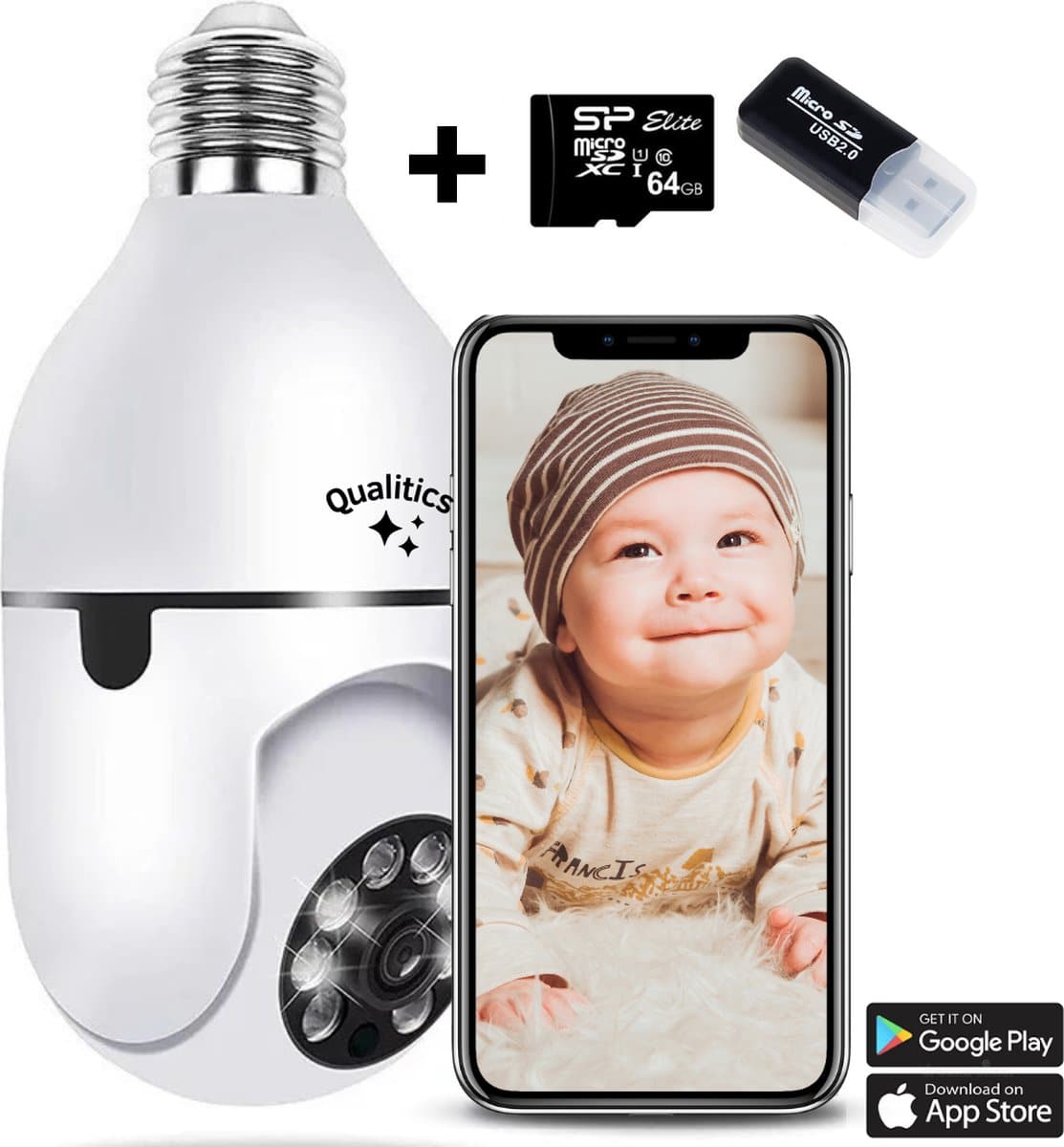 AdultCare Draadloze Babyfoon met Camera en App – met Microfoon en Tweeweg Audio – Baby Monitor In e27 Lamp – Huisdier Camera – 360 graden