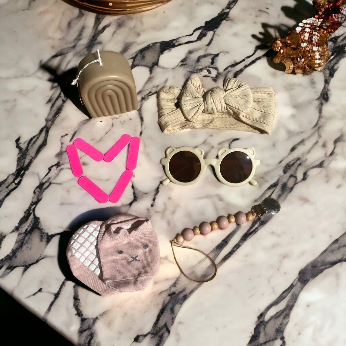*opgelet! Sokjes & haarbanden worden uitgekozen op voorraad je kunt deze in de volgende kleuren ontvangen: Creme, oud roze, beige, warm bruin of koper.