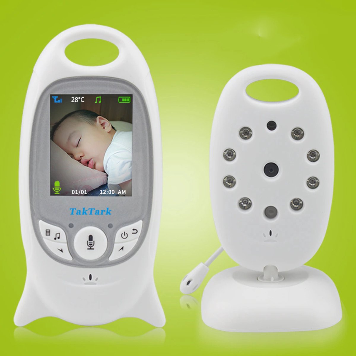 Specificaties: Babyfoon met Camera – Baby monitor – Draadloos met Two Way spraakintercom – 2,0 LCD scherm – Automatische Nachtzicht & Temperatuurbewaking – 8 Ingebouwde slaapliedjes – Infraroodsensor – Huisdiercamera & Beveiligingscamera – Wit