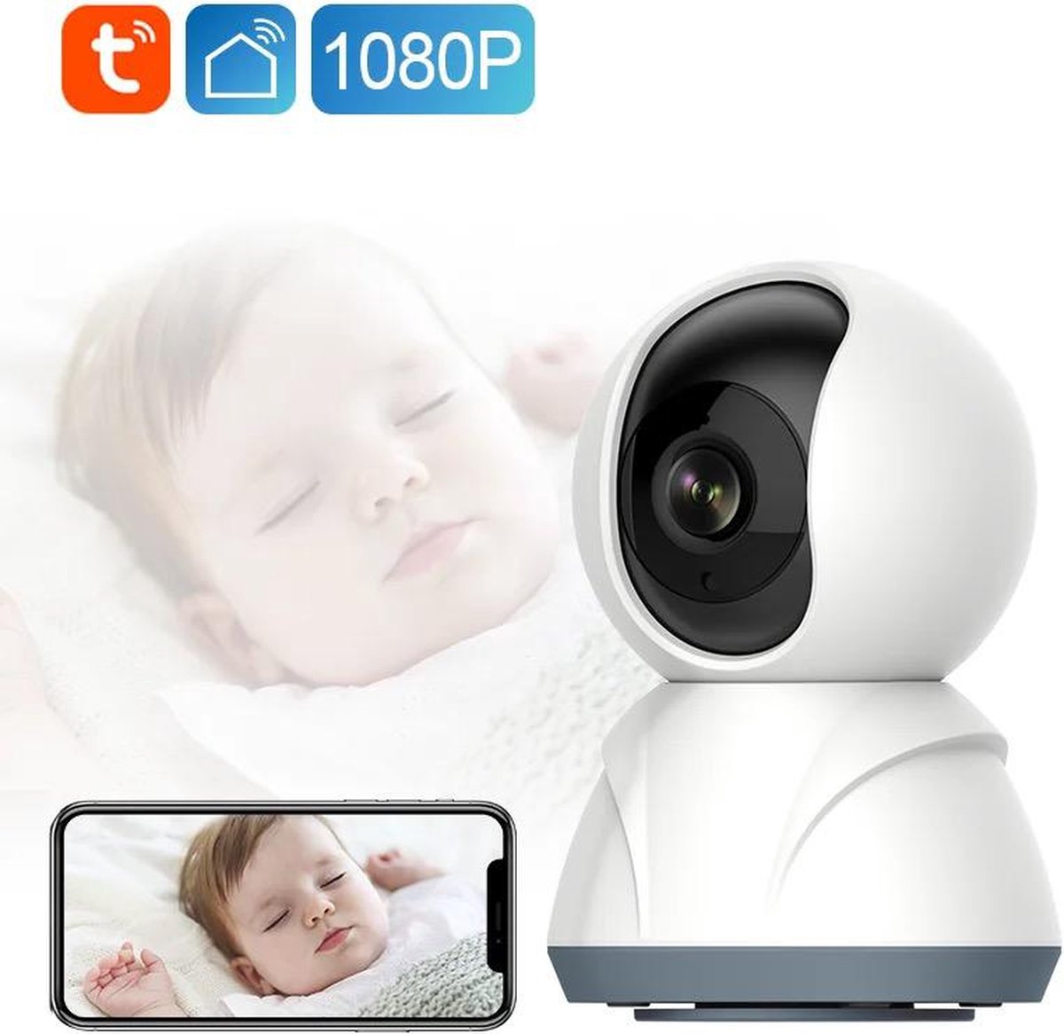 1080p tuya smart wifi Babyfoon met camera en App – WiFi – Full HD – Beweeg en geluidsdetectie – Volg functie – Premium 2.4GHz Wifi Camera