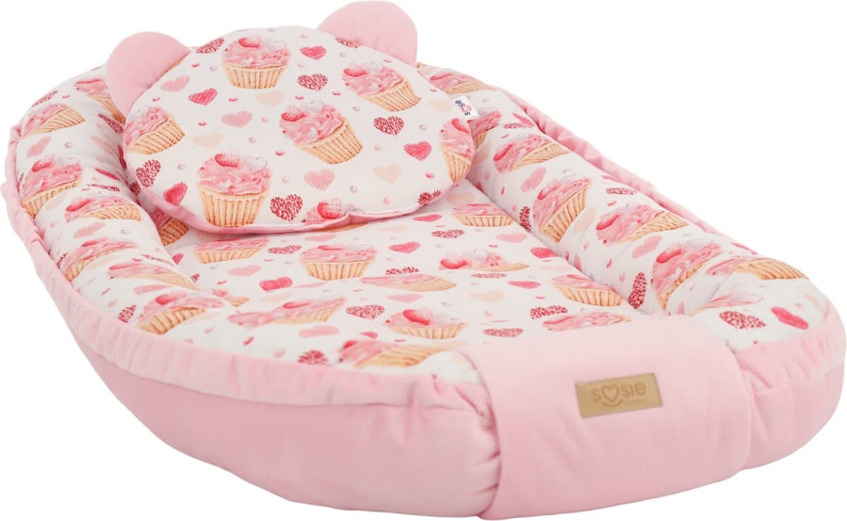 Specificaties: Babynestje – CUTE – Babynest cupcake – rose Velvet – 4 delige SET – Kraamcadeau – GRATIS wiegdeken met kussen