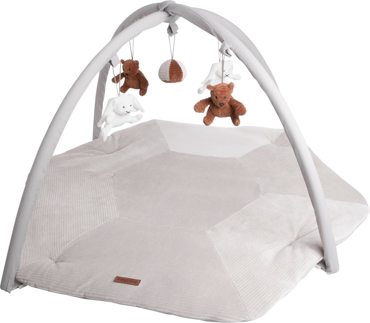 Baby’s Only Baby speelkleed met boog – Baby gym – Playmat – Speelmat Sense – Caramel/Kiezelgrijs/Wit – Zachte rib corduroy stof – 94×83 cm