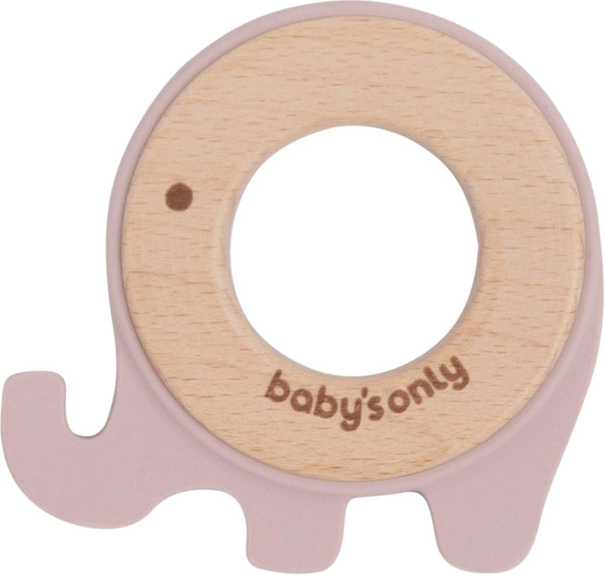 Baby’s Only Houten baby bijtring – Bijtspeeltje olifant – Oud Roze – Baby cadeau