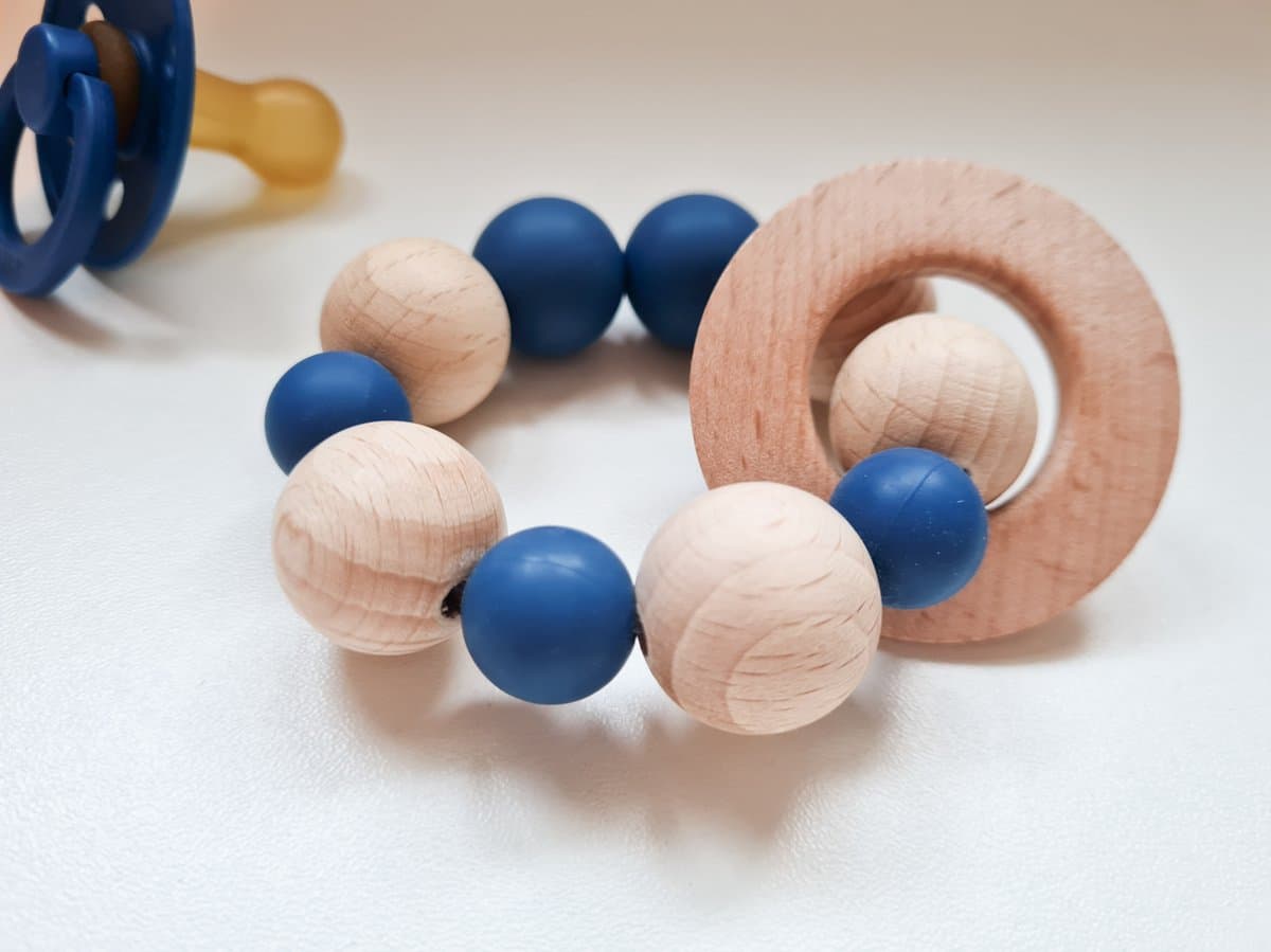 Onze bijtringen zijn gemaakt van onbehandeld beuken hout, BPA vrije kralen en gehaakte kralen van 100% katoen.