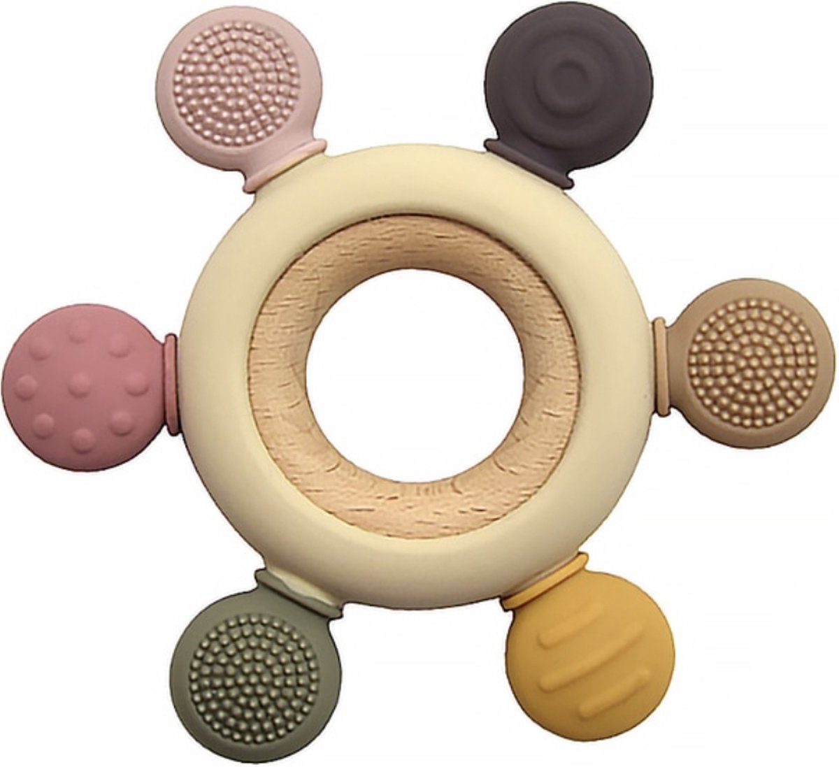 Wilt u het schoonmaken? Haal dan eerst de siliconen rand van het ronde houtje af. Laat het dan uitkoken met warm water (kan met azijn) Laat de bijtring in totaal 2 minuten koken en zet dan de bron uit zodat het water stopt met koken. Haal na vijf minuten de producten weer VOORZICHTIG uit het water. Let op dat de siliconen dan nog erg heet zijn! Laat de producten afkoelen en spoel vervolgens nog even af. Op laten drogen in de lucht.