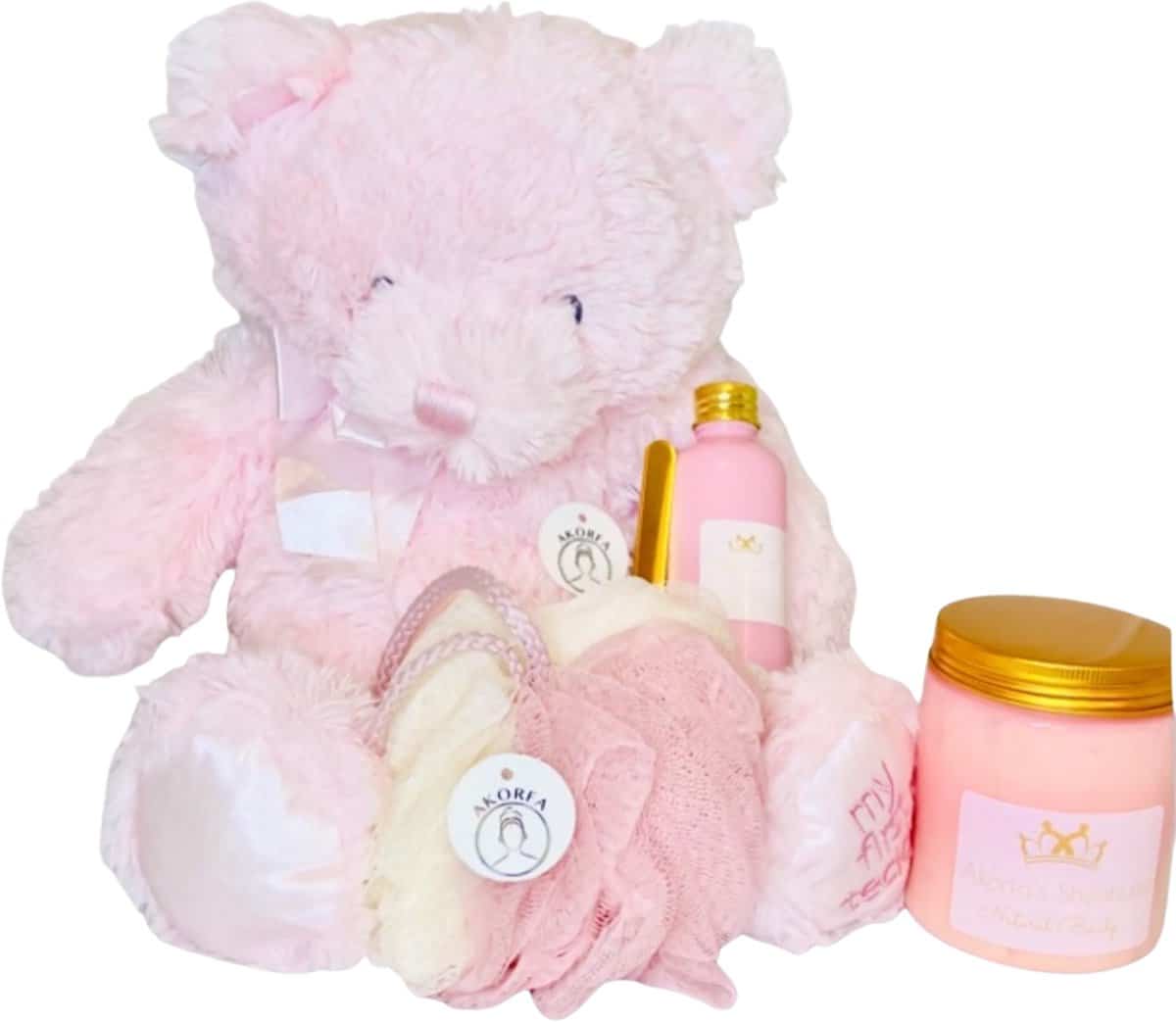 Specificaties: Biologische Sheaboter kraamcadeau voor de baby roze/ Newborn Shea Butter giftset pink large