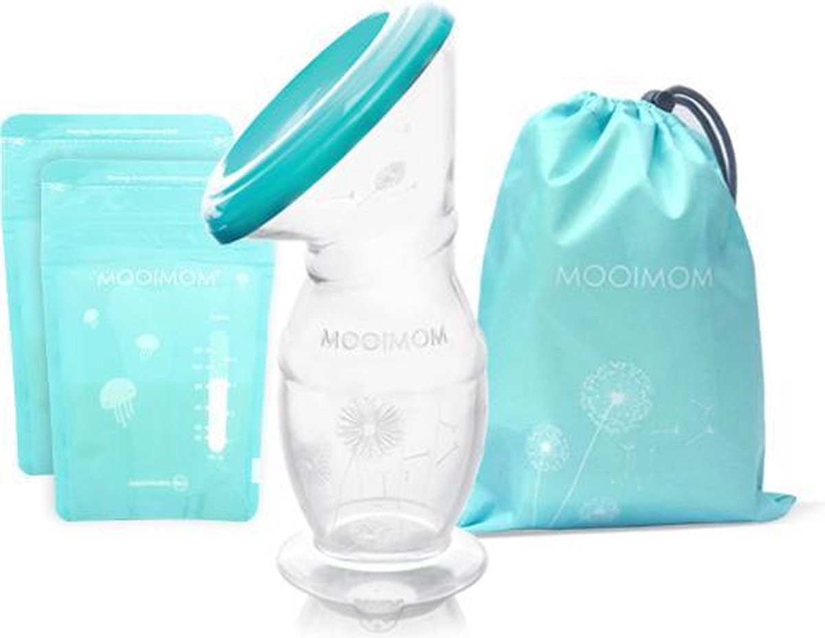 Specificaties: Blossombel MooiMom – Borstkolf Siliconen – Handkolf met Deksel – BPA vrij – 110 ml + 30 Moedermelk Bewaarzakje