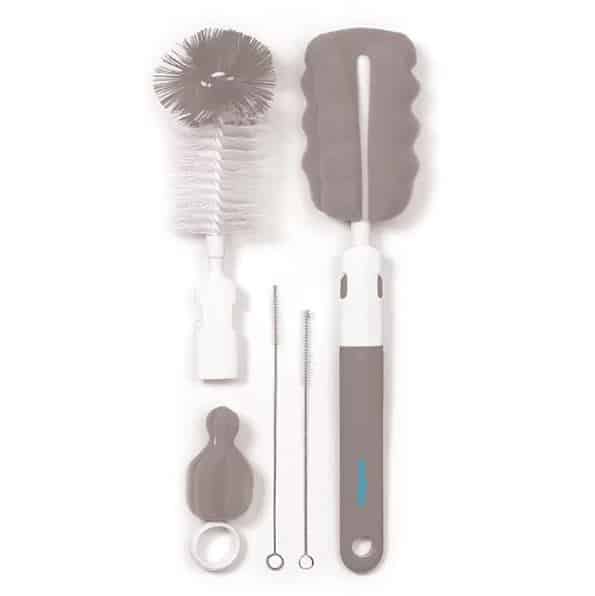 Eigenschappen Borstelset Fles / Bekerl – Merk: Babyono- Set bestaande uit een grote flessenborstel, een grote spons, een schoonmaakborstel voor speentjes en 2 dunne borsteltjes voor rietjes/ Dr. Brown’s flessen- 100% BPA-vrij