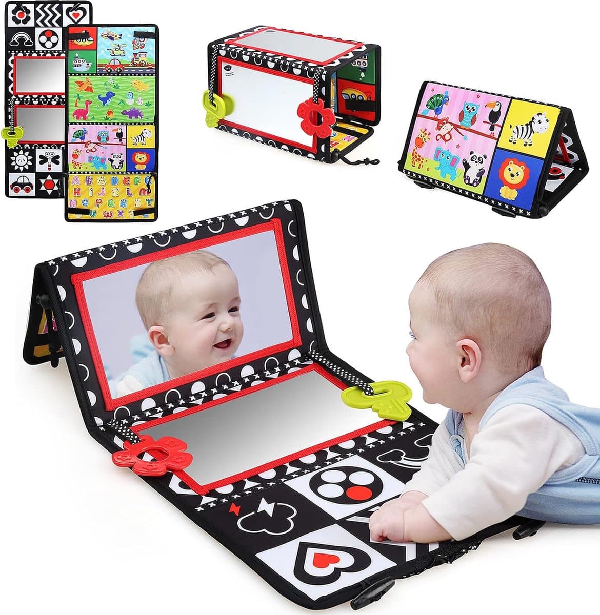 Specificaties: Contrastrijk Buiktijd Spiegel Speelmat – Sensorisch Ontwikkelingsspeelgoed voor Baby’s 0-12 Maanden – Zwart-Wit Montessori Vloerspeelgoed met Bijtring
