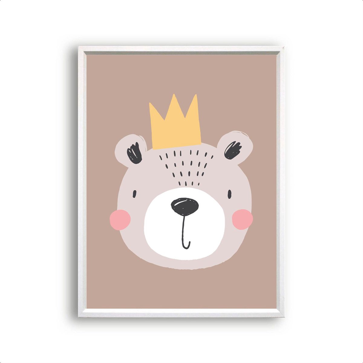 Specificaties: Design Poster Beer de Koning – Bruin / Dieren poster / kinder – Babykamer / 40x30cm – PosterCity