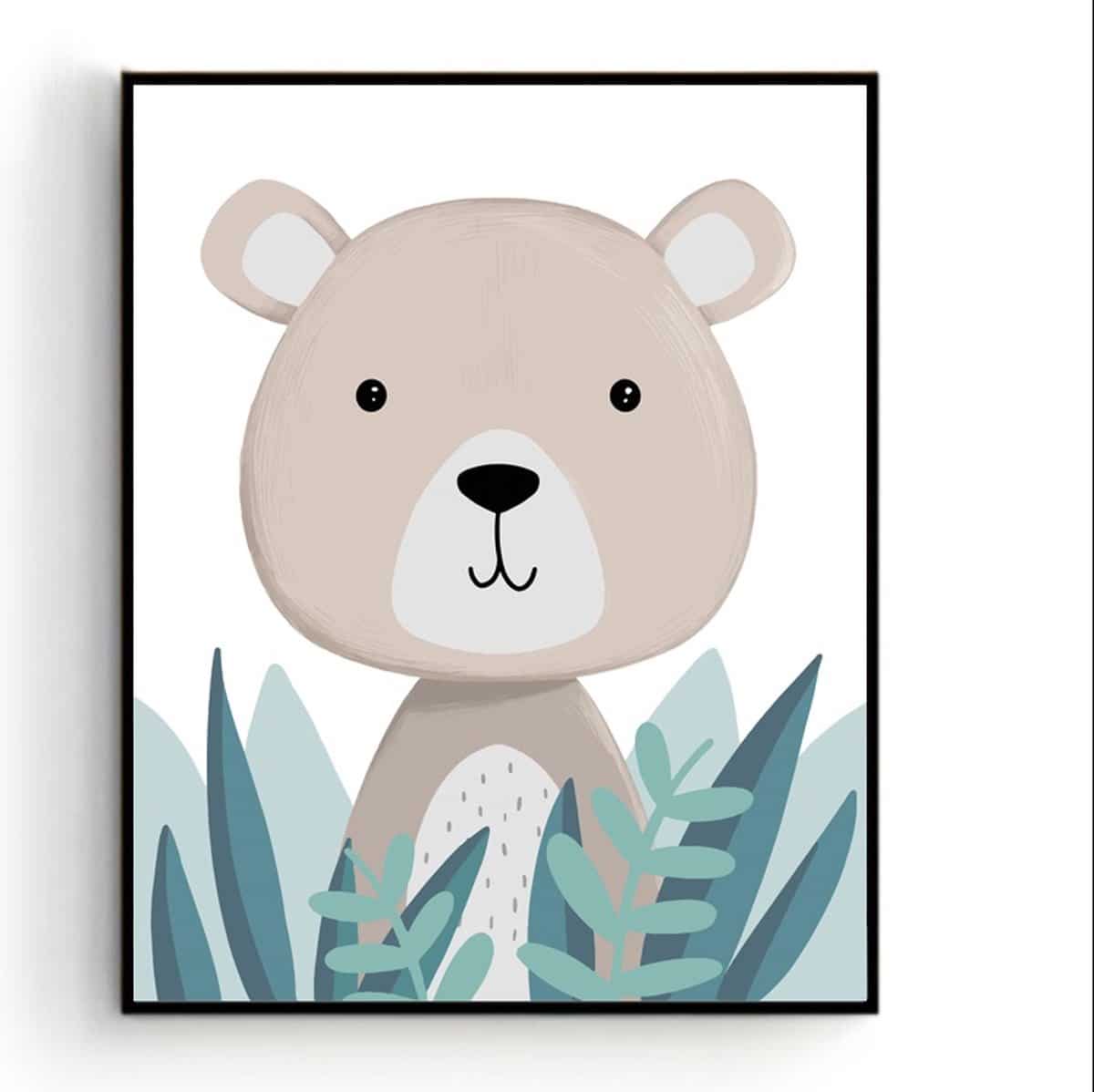 Design Poster Beer in het Hoge Gras / Kinderkamer / Dieren Poster / Babykamer – Kinderposter / Babyshower Cadeau / Muurdecoratie / 40 x 30cm – A3 / Postercity