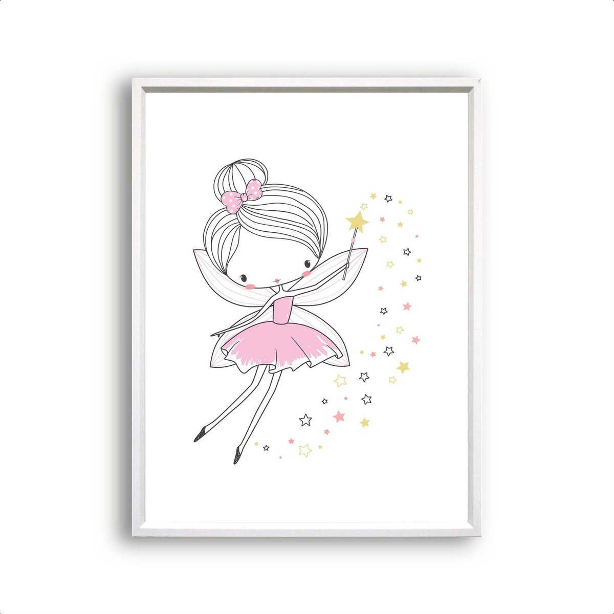 Specificaties: Design Poster Meisje de fee met toverstaf en sterren roze / Kinderkamer / Meisjeskamer / Muurdecoratie / 50x40cm – Postercity