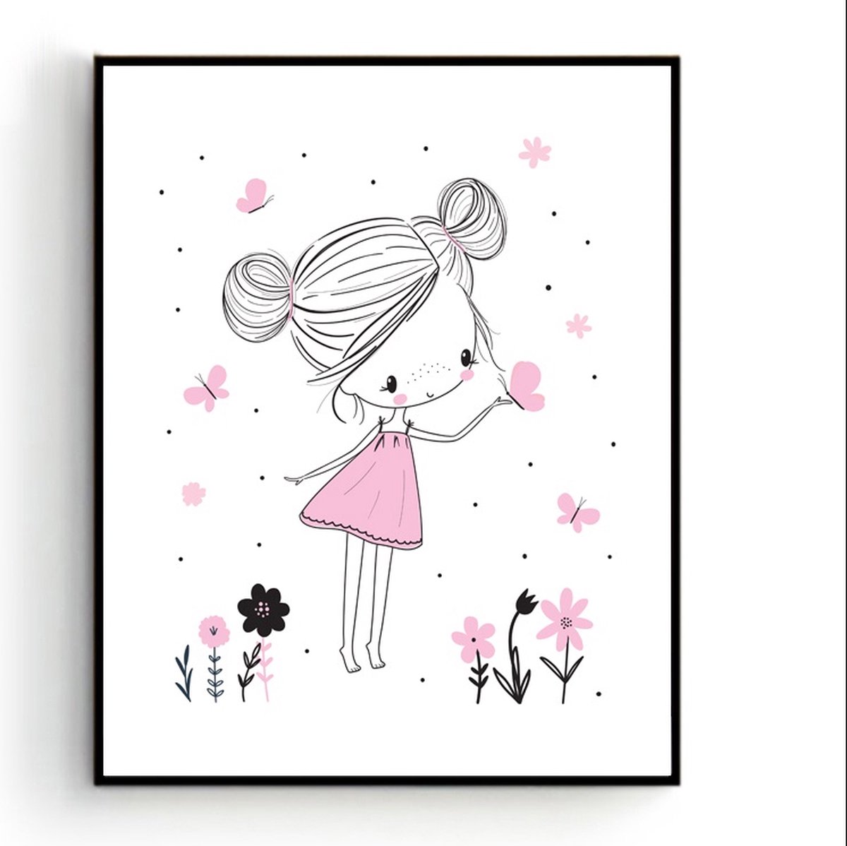 Met deze poster van een meisje met vlinders roze geeft u aan iedere kamer in een handomdraaien een nieuwe look.