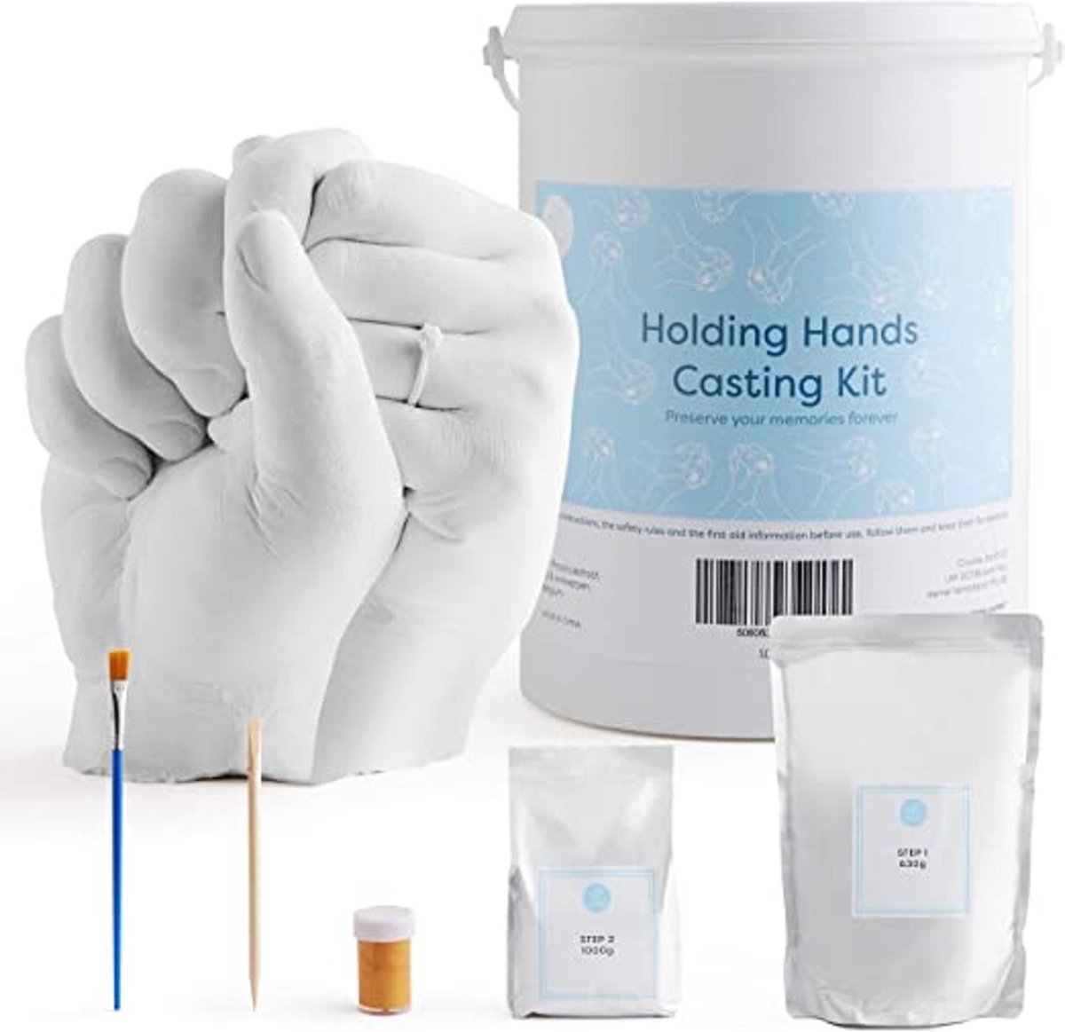COMPLETE GIPSHANDENSET – Deze handsculptuurset bevat alles wat u nodig hebt om gipshanden te maken. Inbegrepen zijn de poeders, de 2 mengemmers, de vormspatels en nog veel meer! We hebben ook een elegante houder bijgevoegd, zodat u uw dierbare gipshanden aan iedereen kunt tonen.