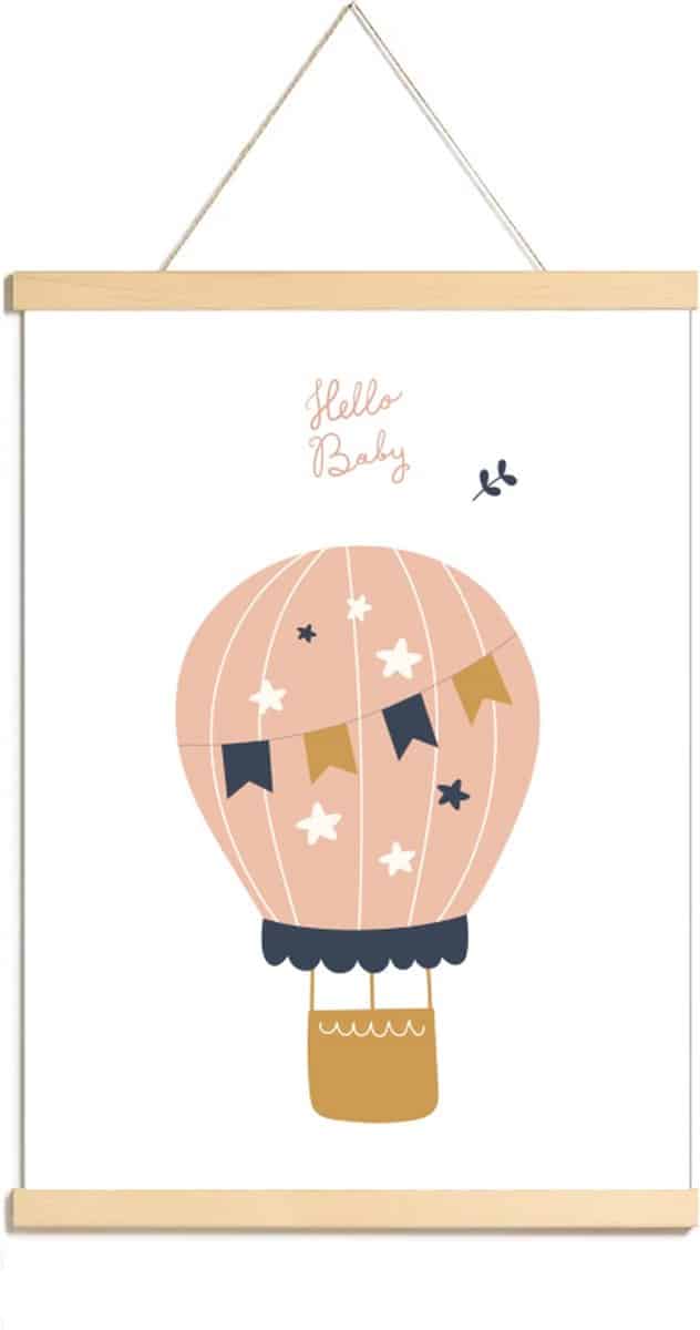 Je krijgt een super leuk en kant-en-klaar decoratiestuk (A3 formaat) voor in de babykamer of kinderkamer. Een mooie Luchtballon Hello Baby canvas poster in een elegante houten frame (met touw), zodat je de poster direct kunt ophangen. Je kunt dus zelf bepalen waar de poster opgehangen wordt, je hebt maar 1 schroefje nodig!