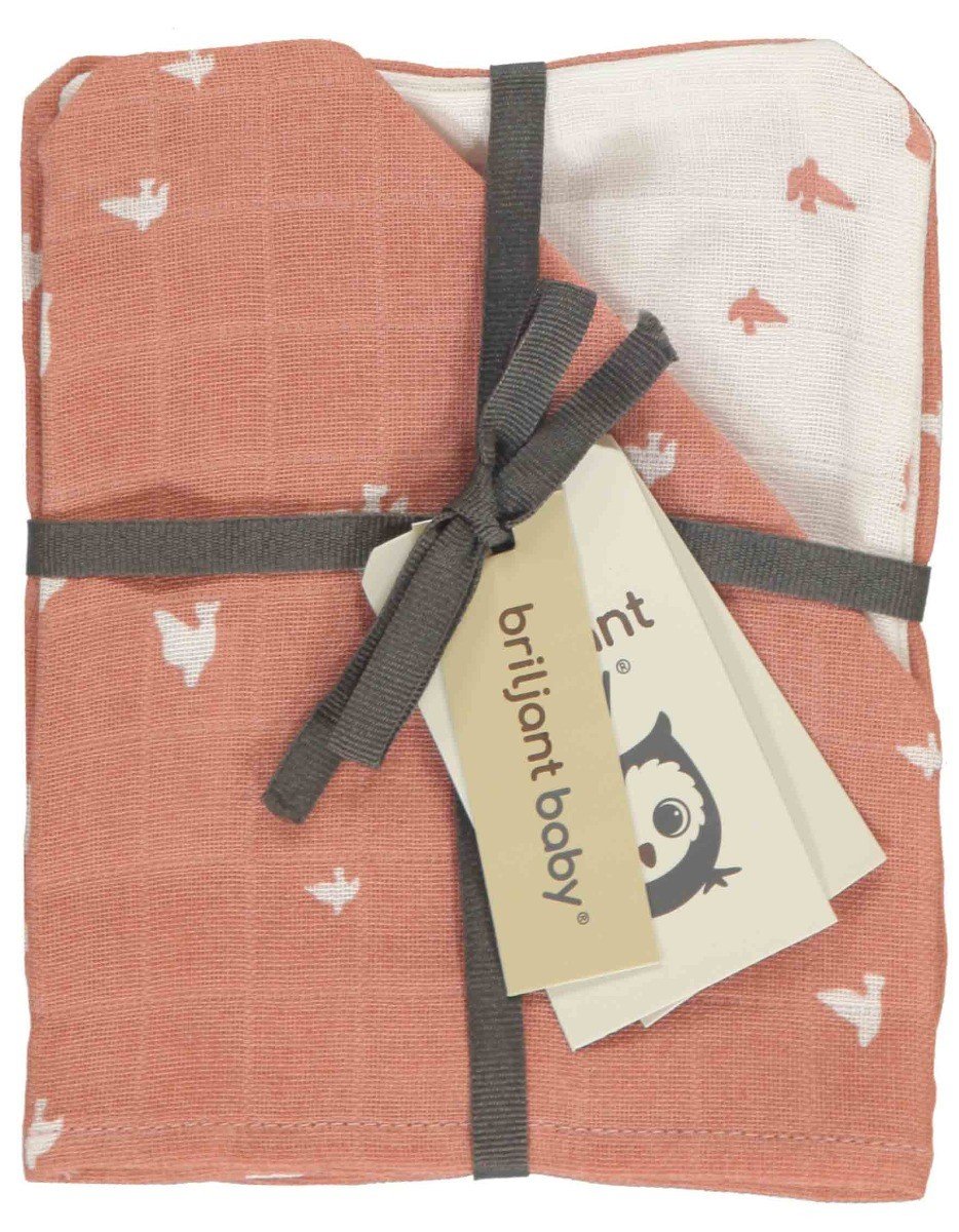 Specificaties: Hydrofiele Washandjes Briljant Baby Birds Organic Ash Rose 4st