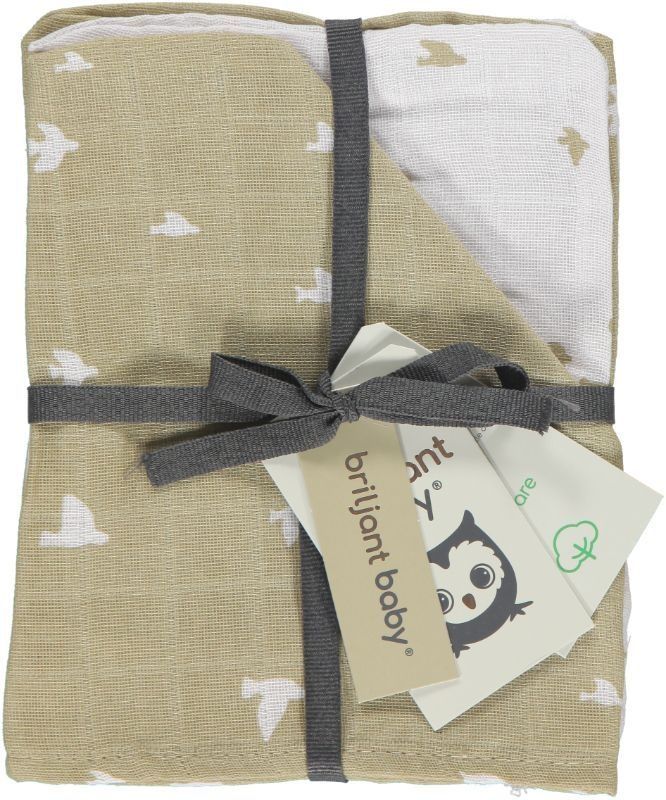 Specificaties: Hydrofiele Washandjes Briljant Baby Birds Organic Zand 4st