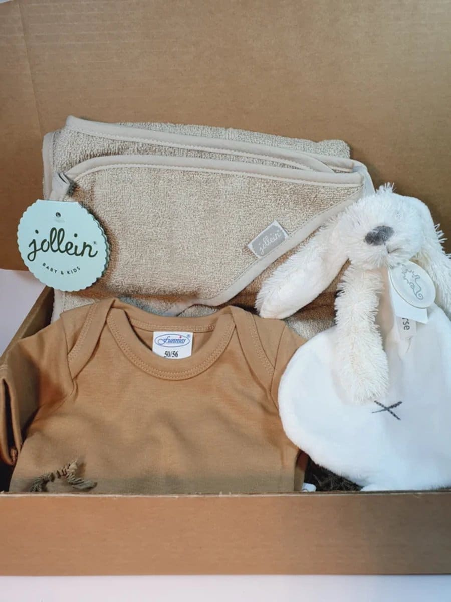 Kraamcadeau beige/wit – babyshower – unisex – jongen of meisje – kraammand
