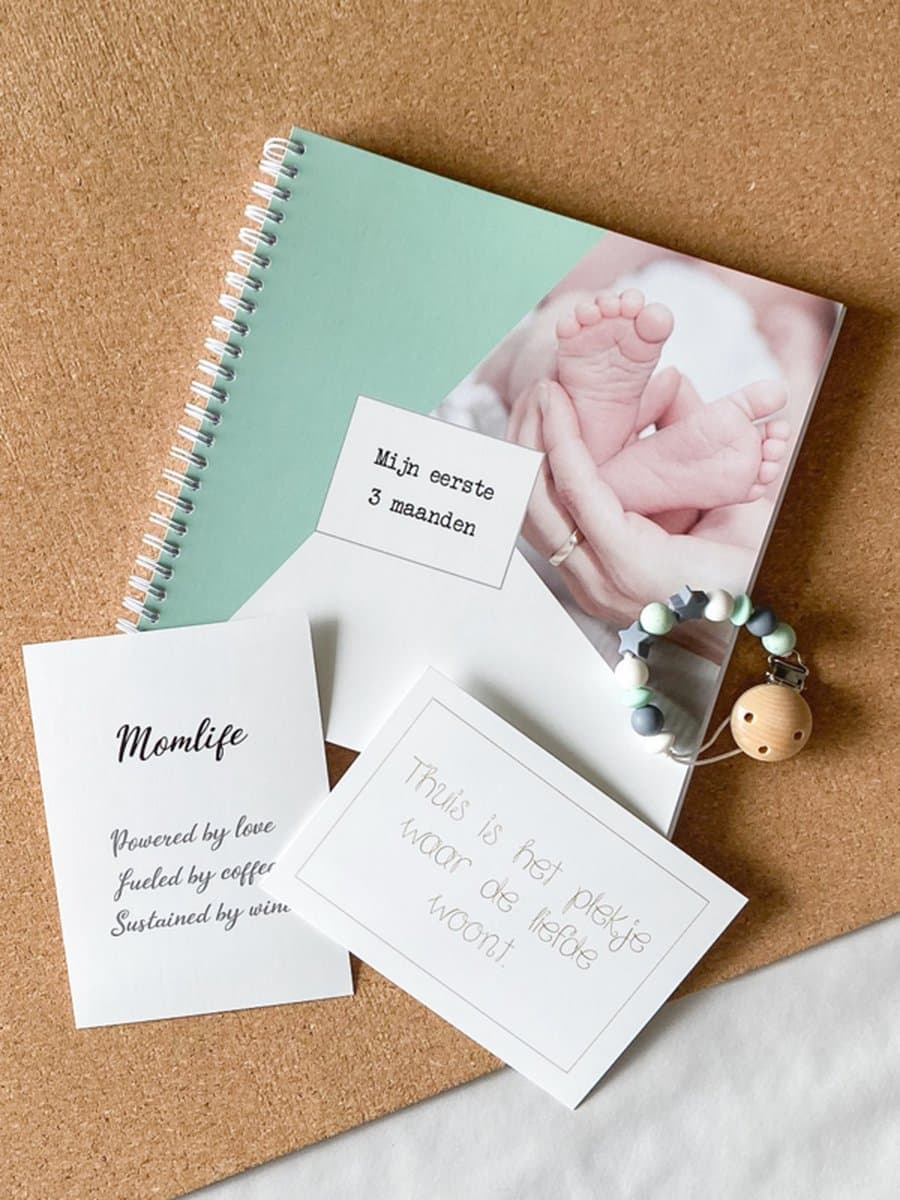Het Mijn eerste 3 maanden boek is een invulboek waarin je uitgebreid kunt vertellen over jouw kleine wondertje. Het start kort met de zwangerschap en de bevalling. Dan is er wat ruimte voor het gezin van herkomst. De eerste 7 dagen zijn per dag omdat er dan zoveel gebeurt. Daarna is er ruimte per week. Je kunt foto’s plakken en er staan mooie spreuken in. Als afsluiting kun je notities maken.