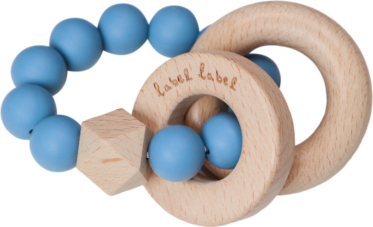 Specificaties: Label Label Blauw Hout & Silicone Kralen Bijtring LLST-15195
