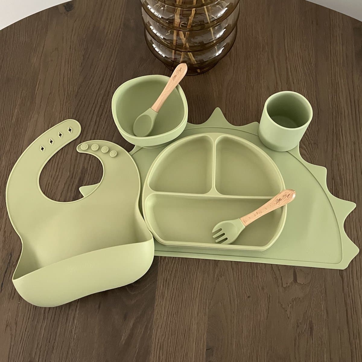 Little Tiger – Babyshower – Kraamcadeau – Kinderservies – Baby Servies – 100% BPA VRIJ – Baby – Slabbetje – Baby Bord – Baby Kom – Baby Bestek – Baby Drinkbeker – Placemat – Kleur Olive