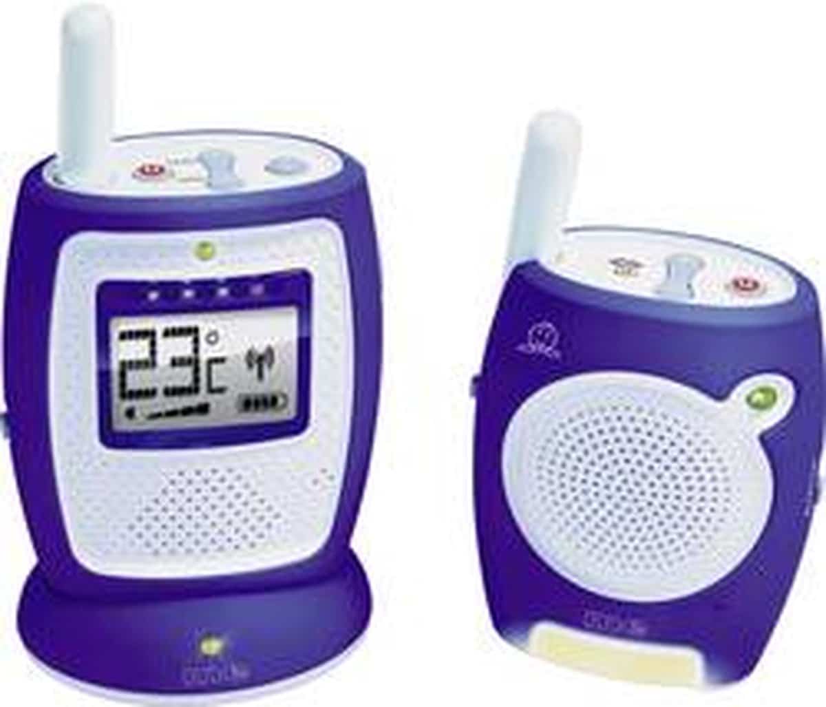 De zender (baby) is voorzien van 3 verschillende slaapliedjes (kunnen vanaf de ontvanger worden gestart) en heeft geluidsactivering (VOX) met instelbare gevoeligheid. Het controlelampje op de zender garandeert een veilige verbinding met de ontvanger. Om onnodige elektromagnetische vervuiling te voorkomen kan het zendvermogen worden omgeschakeld tussen ECO of MAX. De zeer gevoelige microfoon neemt ook zachte geluiden op. Daarnaast is er een nachtverlichting met 3 functies (auto: lichtsensor schakelt de verlichting automatisch aan of uit, of handmatig aan of uit) in de zender ingebouwd. De ontvanger met intercomtoets om uw kind gerust te stellen (2-weg communicatie) kan eenvoudig via de meegeleverde oplader worden opgeladen en met de hoogwaardige NiMH accu worden gebruikt. De LED lichtband zorgt voor een optische geluidsindicatie. De LC-display geeft niet alleen de accu- en laadtoestand aan, maar ook de temperatuur in de kinderkamer, geluidssterkte, accutoestand, bereik etc. Bovendien kunnen de slaapliedjes (1, 2 of 3) via de ontvanger worden bediend.