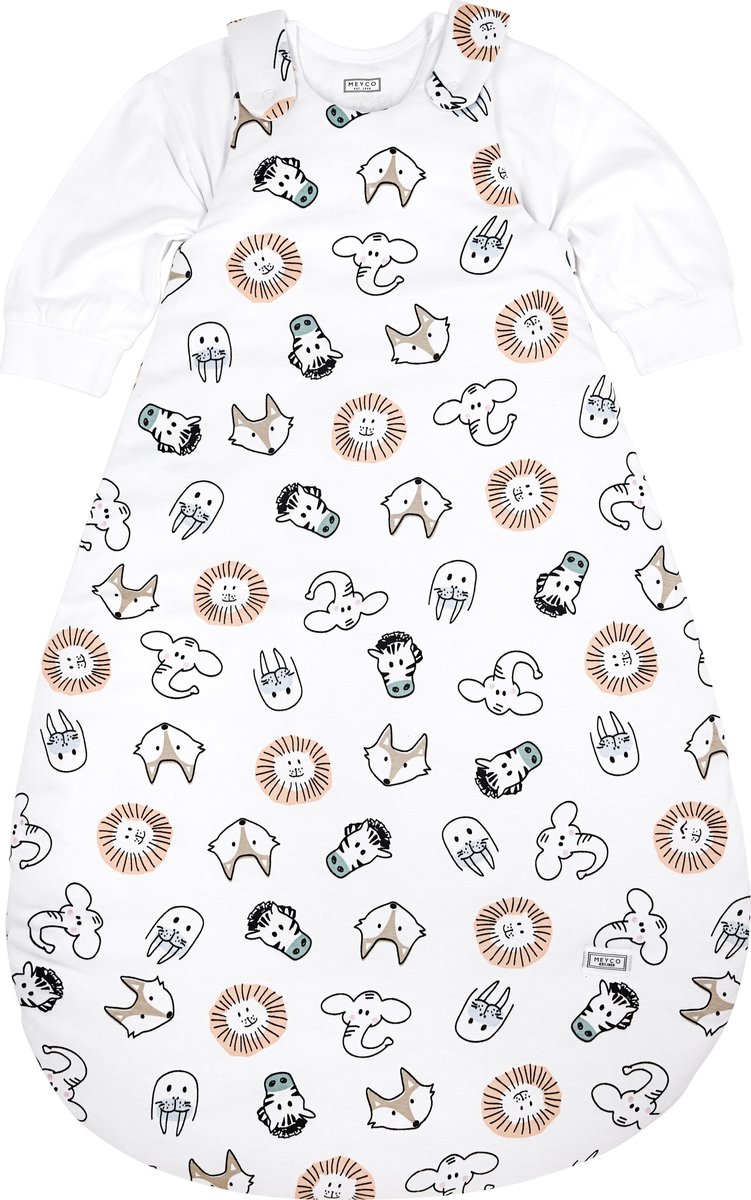 De wijde, ronde onderkant zorgt ervoor dat je kindje voldoende bewegingsvrijheid heeft. De lange rits loopt helemaal door tot onderaan zodat je je kleintje gemakkelijk kunt verschonen. De slaapzak heeft een veilige pasvorm, doordat hij goed aansluit bij de hals en de armpjes. Het vrolijke Animal printje mix en match je perfect met de complete Meyco Baby collectie.