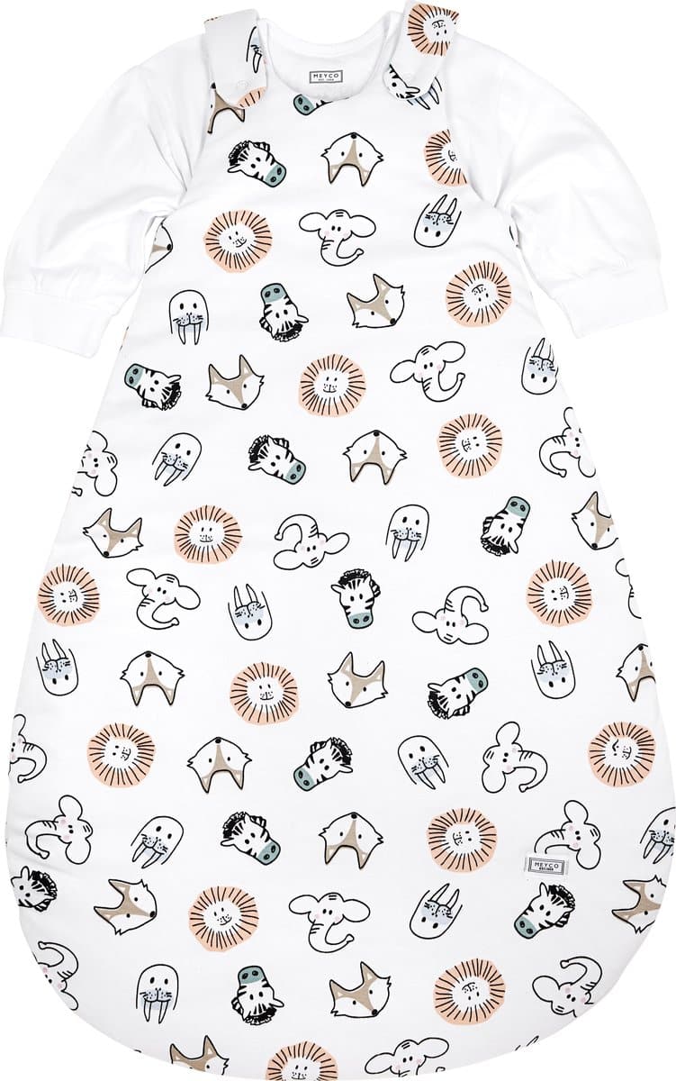 Wat een vrolijke beestenboel op deze Meyco Baby Slaapzak Rond Tweedelig Animal. De slaapzak zorgt ervoor dat jouw kleintje het hele jaar door heerlijk comfortabel slaapt met een altijd juiste temperatuur.