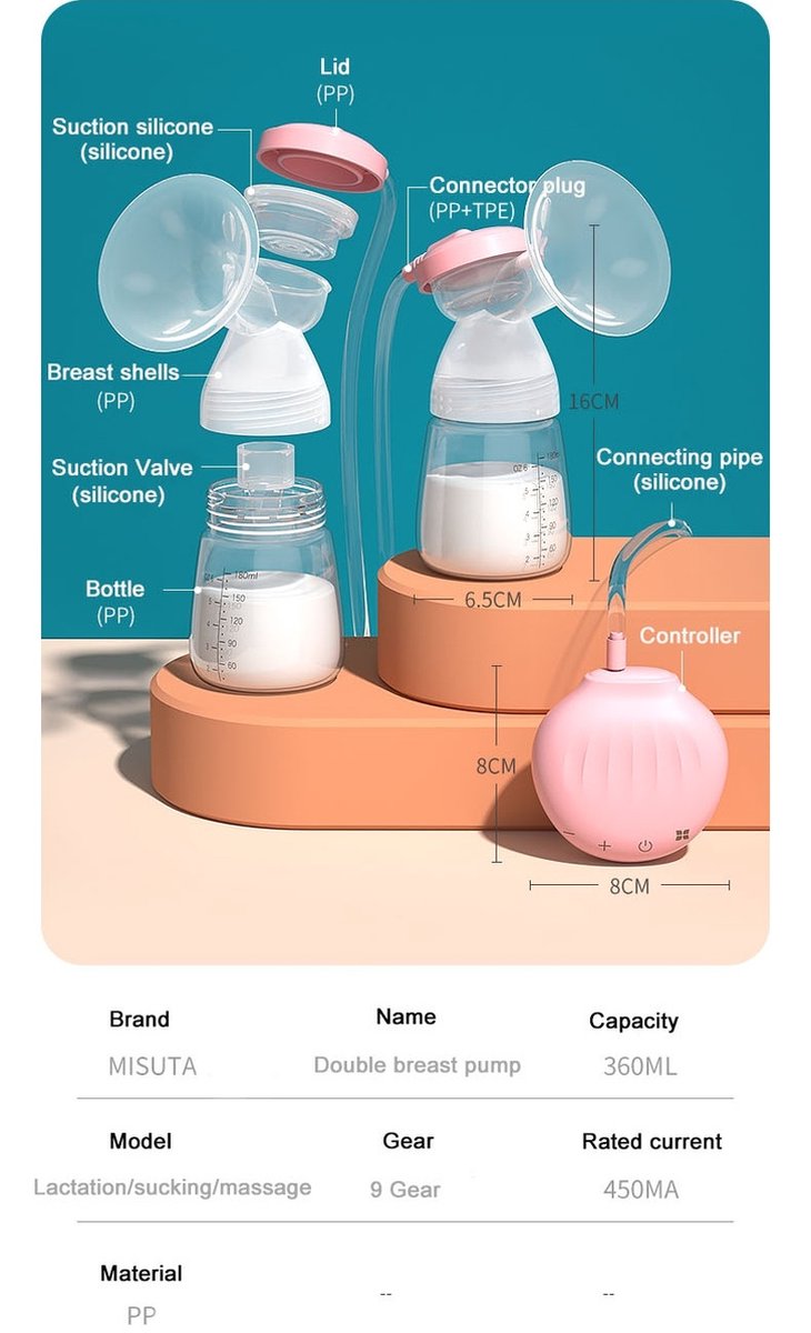 Specificaties: Misuta – elektrische massagezuigende BORSTKOLF (dubbelzijdig) (bpa vrij)