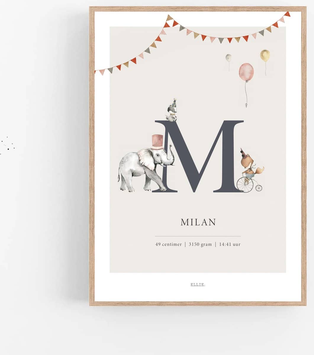 Specificaties: Persoonlijke geboorte poster met naam | Naamposter WILD CIRCUS – 30 x 40 cm – Baby en kinderkamer accessoire – Het perfecte kraamcadeau