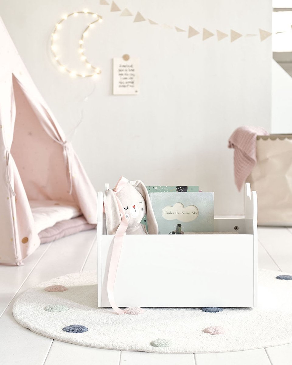 Onze witte speelgoedkist Ted maakt het organiseren van de kinderkamer of woonkamer een stuk makkelijker. Het handige opbergvak zonder deksel zorgt ervoor dat speelgoed opgeborgen kan worden op zo’n manier dat ze wel weer snel tevoorschijn gehaald kunnen worden.