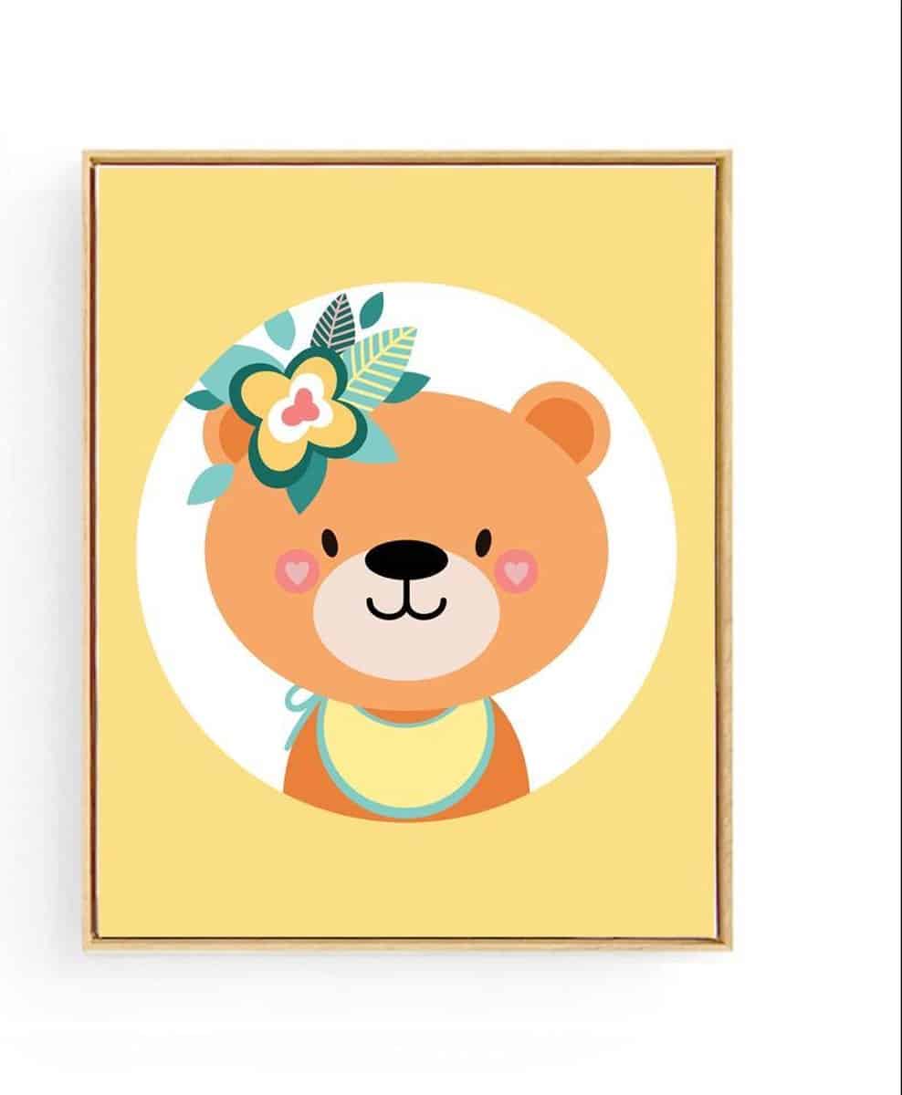Specificaties: Poster Beer Geel met Bloemetje – 50x40cm – Dieren – Baby / Kinderkamer Muurdecoratie
