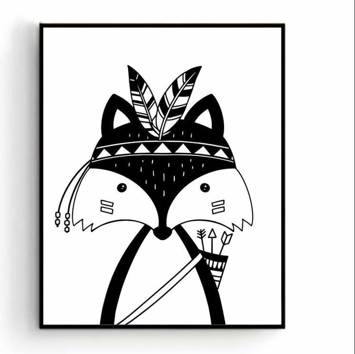 Poster Indianen Vos Zwart/Wit – Kinderkamer – Dierenposter – Babykamer / Kinderposter – Babyshower Cadeau – Muurdecoratie – 40x30cm A3 – Postercity