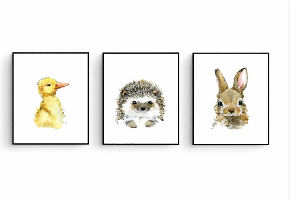 Met deze posters van de aquarel getekende dieren eendje konijntje en egeltje geeft u aan iedere kamer in een handomdraaien een nieuwe look.