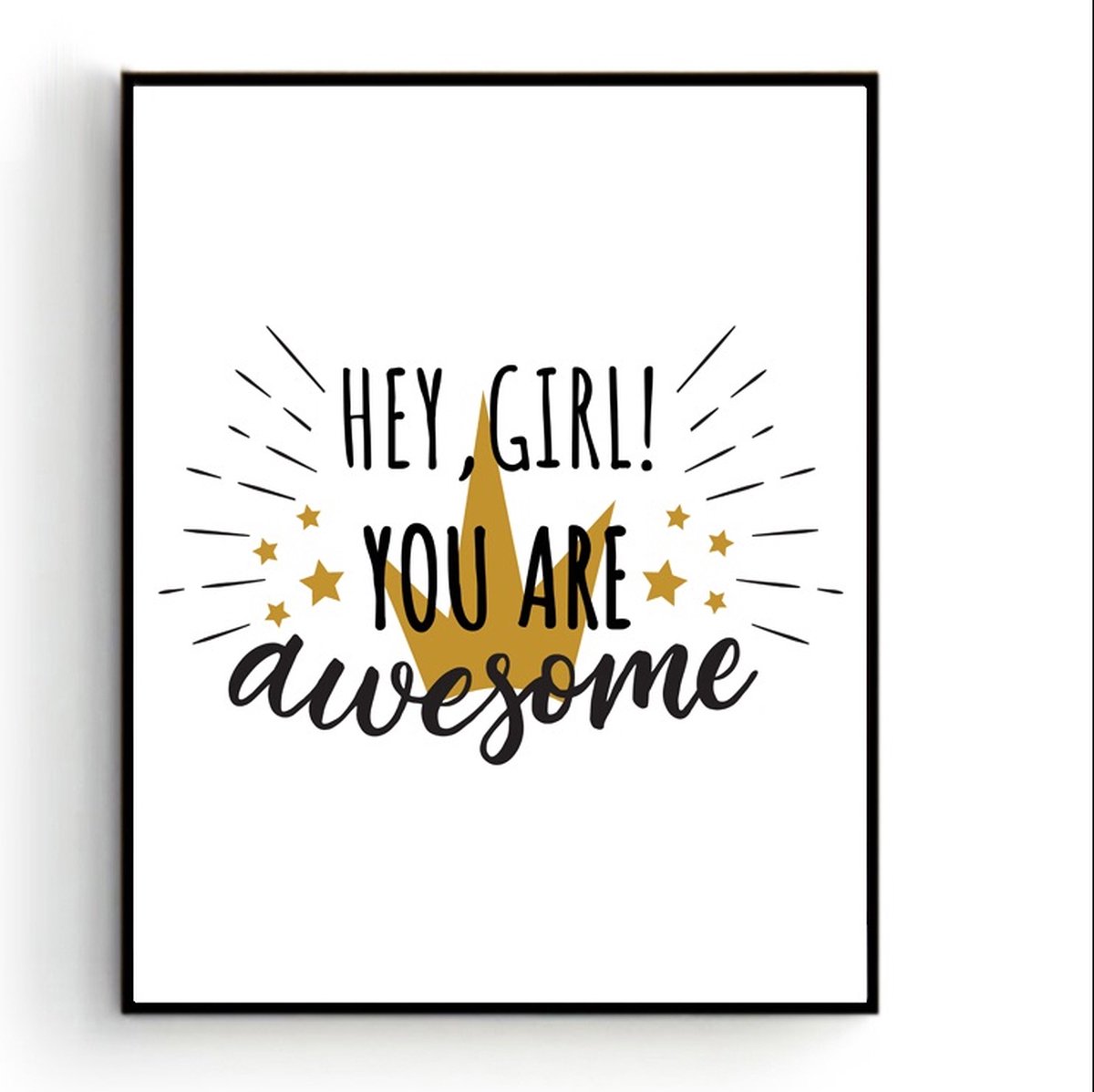 Met deze poster van de tekst hey girl you are awesome met een goud kroontje geeft u aan iedere kamer in een handomdraaien een nieuwe look.
