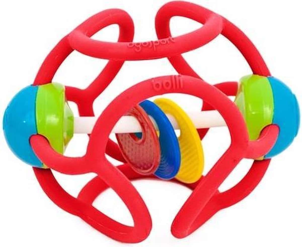 Een toch wel apart uitziende rammelaar bal van het merk OgoBolli. Gemaakt van niet giftige stoffen, vaatwasser veilig en BPA+PVC vrij. Met het rammelaartje aan de binnenkant van de bal maakt deze bal een leuk rammelgeluid en door de zachte buitenstof ook nog heerlijk om op te sabbelen.