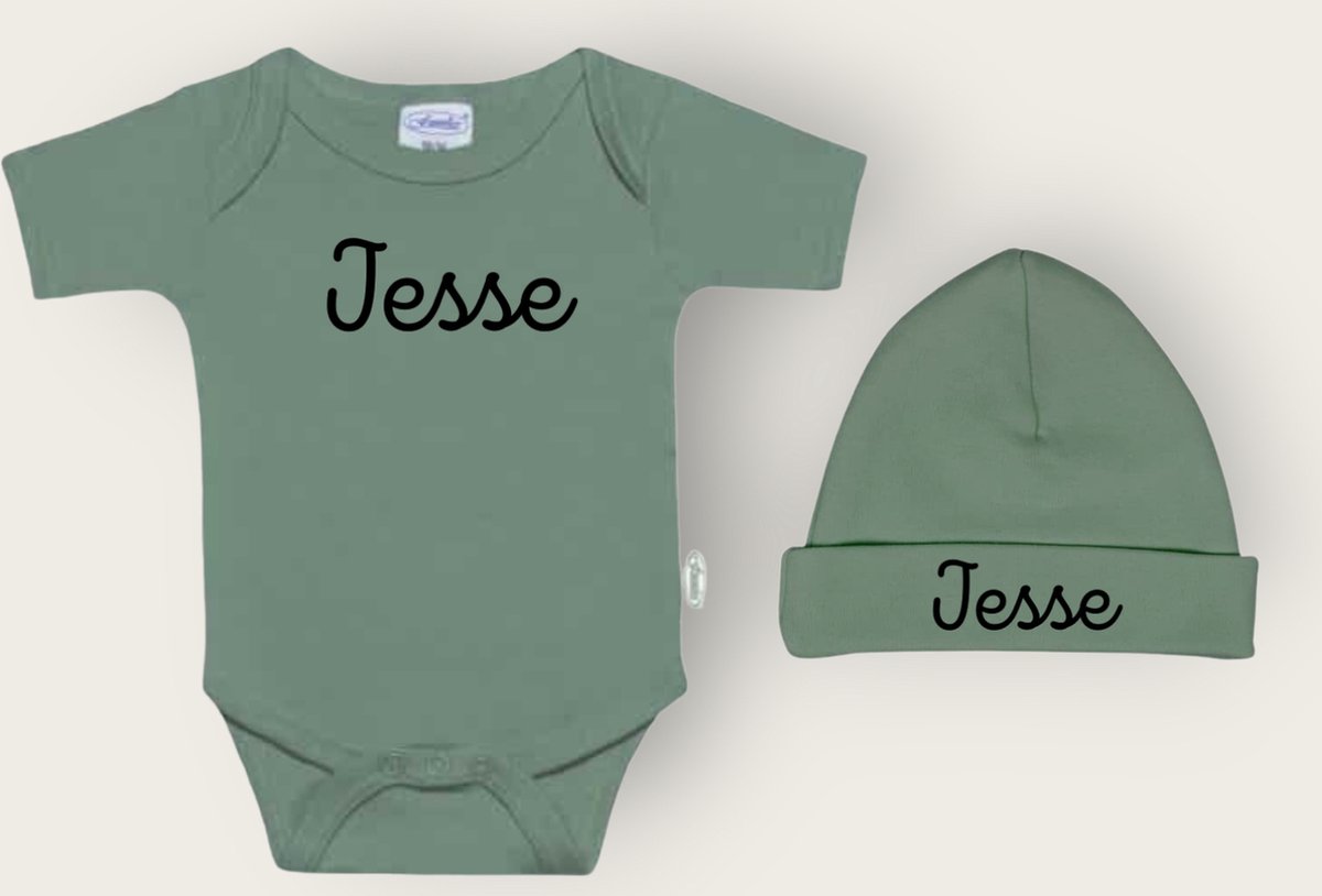 romper met naam, mutsje met naam, kraamcadeau, cadeauset, geboorte cadeau, babyshower