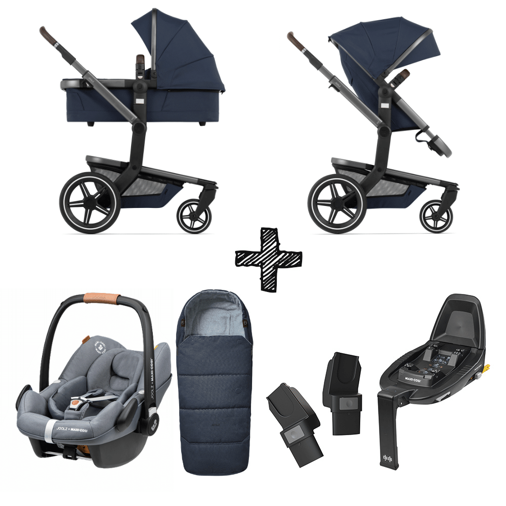 Set Compleet | Kinderwagen Joolz Day+ Navy Blue + Autostoel & Base & Voetenzak & Adapterset