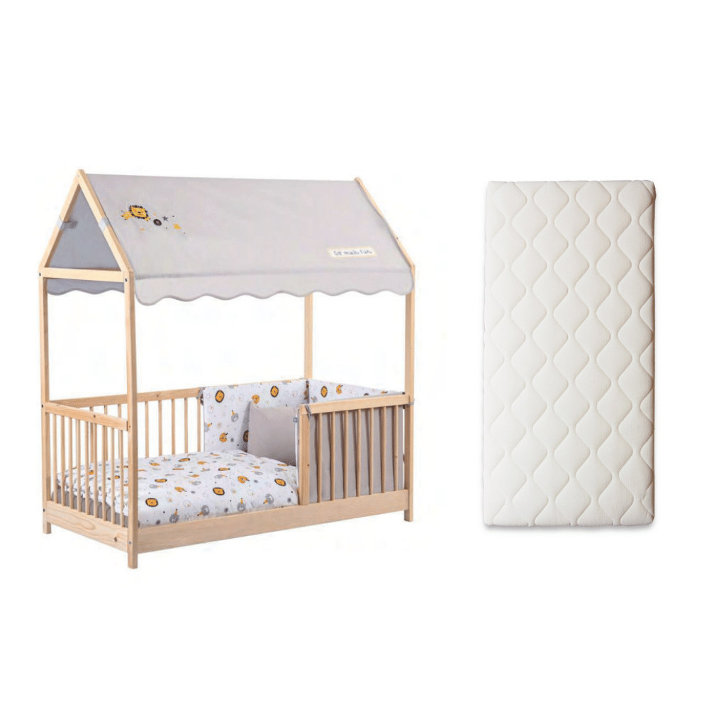 Set | Huisbed Kukka 70×140 Wooden Montessori Activity Bed Natural + Matras Comfort Superior