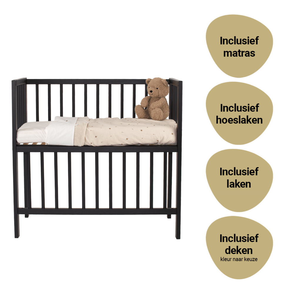 Set | Wieg Co-Sleeper Bedside Open Black Compleet 5-delig