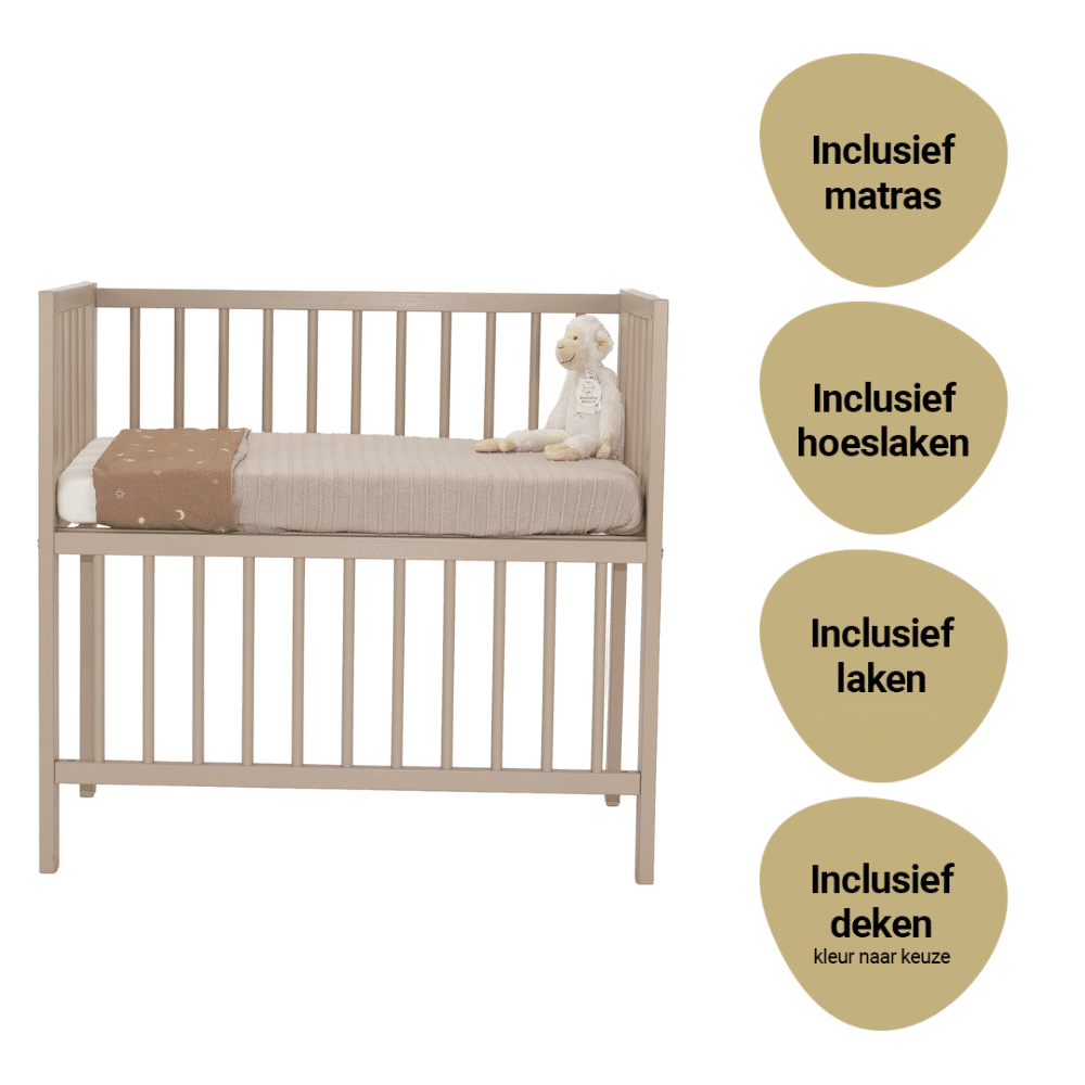 Specificaties: Set | Wieg Co-Sleeper Bedside Open Sand Compleet 5-delig