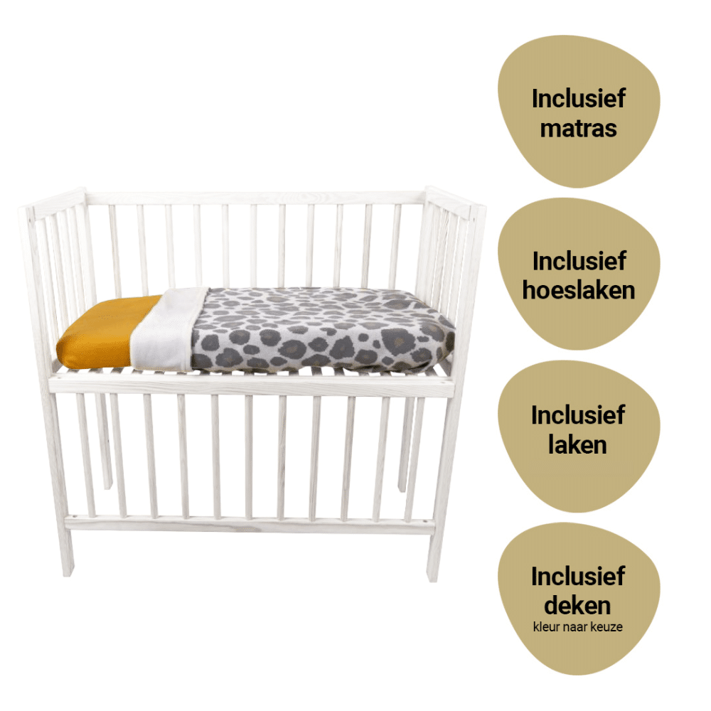 Set | Wieg Co-Sleeper Bedside Open White Wash Compleet 5-delig