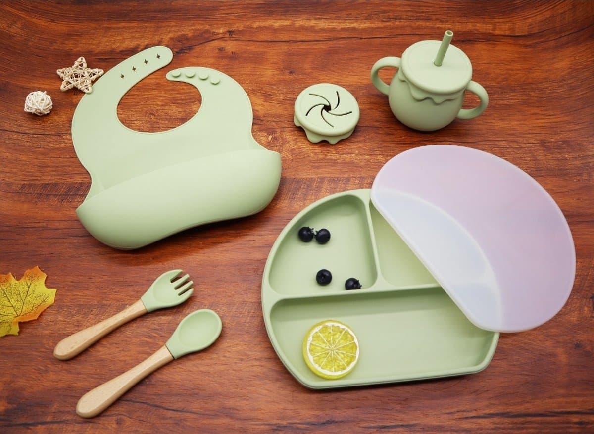 Siliconen Kinderservies Met Zuignap – Baby Eet Set – Baby Servies – Bestek Baby – Baby eten – Kraamcadeau – Babyshower – Olijfgroen