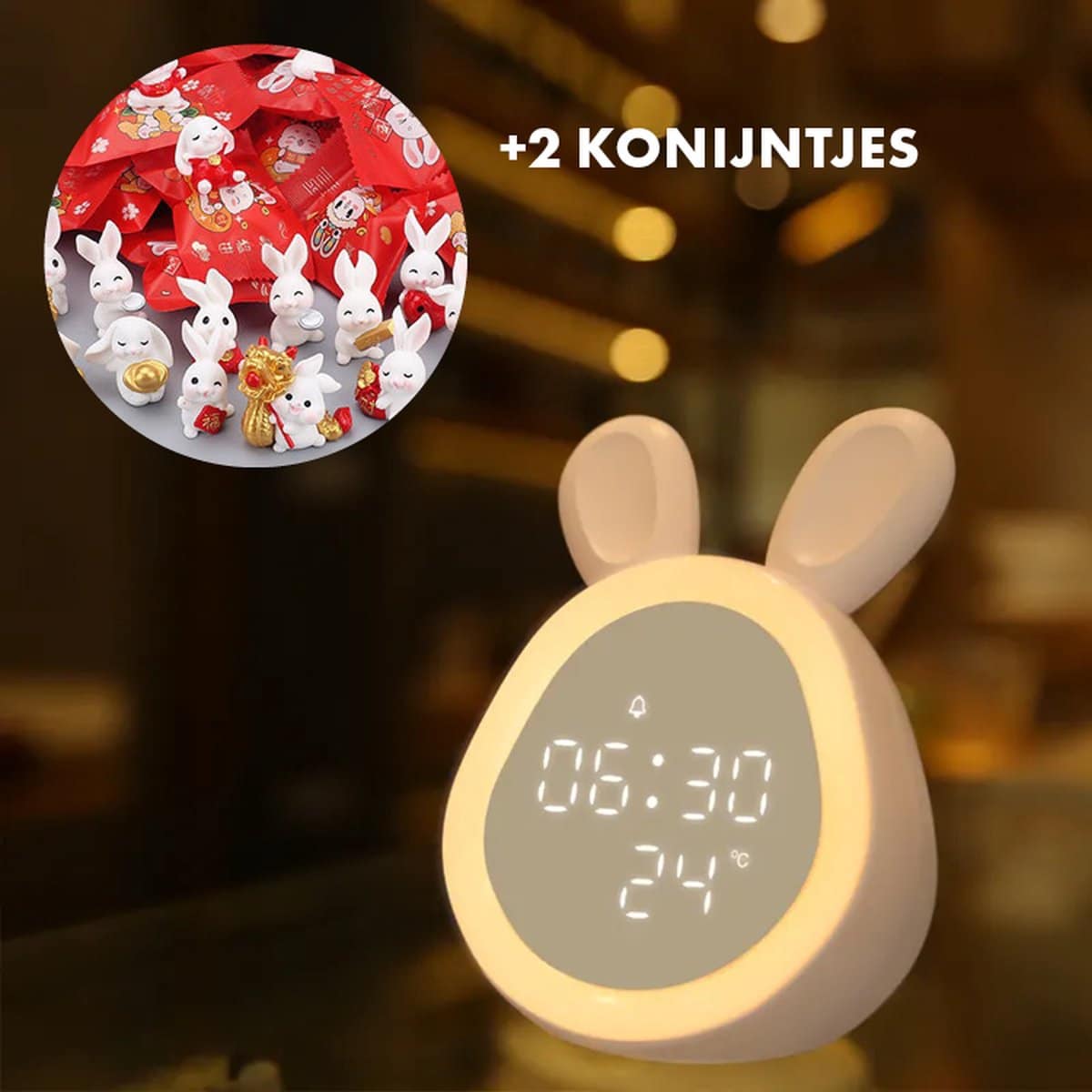 Productbeschrijving Voor jonge kindjes is het slaapritme niet zoals de meeste ouders dat graag zouden willen zien. Het resulteert vaak in kindjes die te vroeg hun bed uit zijn in de ochtend, dit omdat zij zelf nie goed weten hoe lang ze op bed moeten blijven liggen. Is dit probleem herkenbaar voor u? Dan is deze lieve en schattige Konijnen slaaptrainer uw aller beste vriend! Nu met 2 leuke extra baby konijntjes als verrrasing.