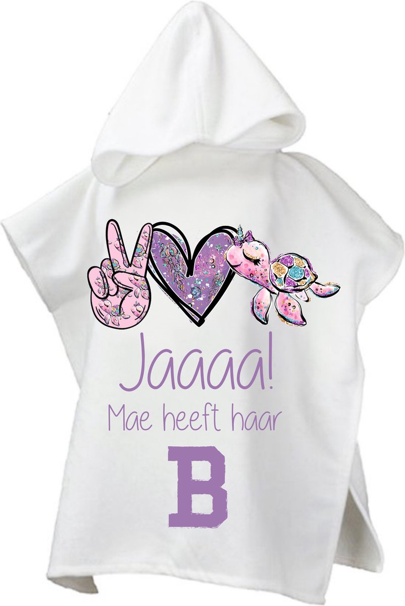 Ben je op zoek naar een orgineel cadeau voor het afzwemmen van je/jullie waterrat,dan is deze leuke poncho met afbeelding en naam
