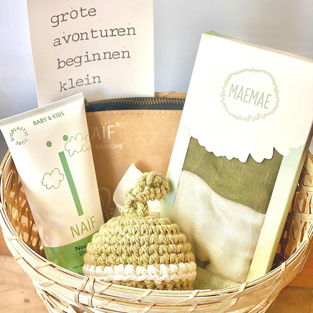 TOET Kraammand | Little Green Friend | Kraamcadeau | cadeaubox | giftset