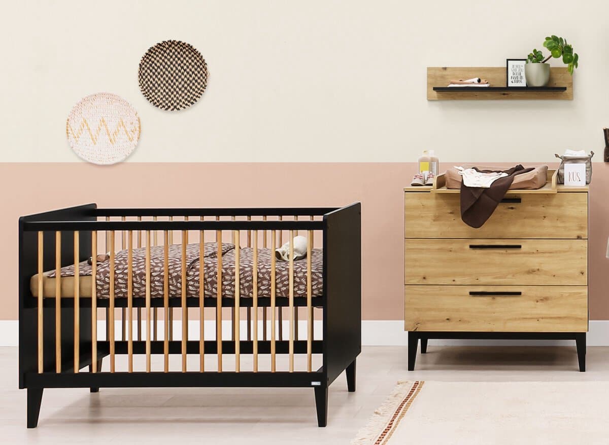ToiToiKids Xem 2-delige babykamer – Mat Zwart/Eiken