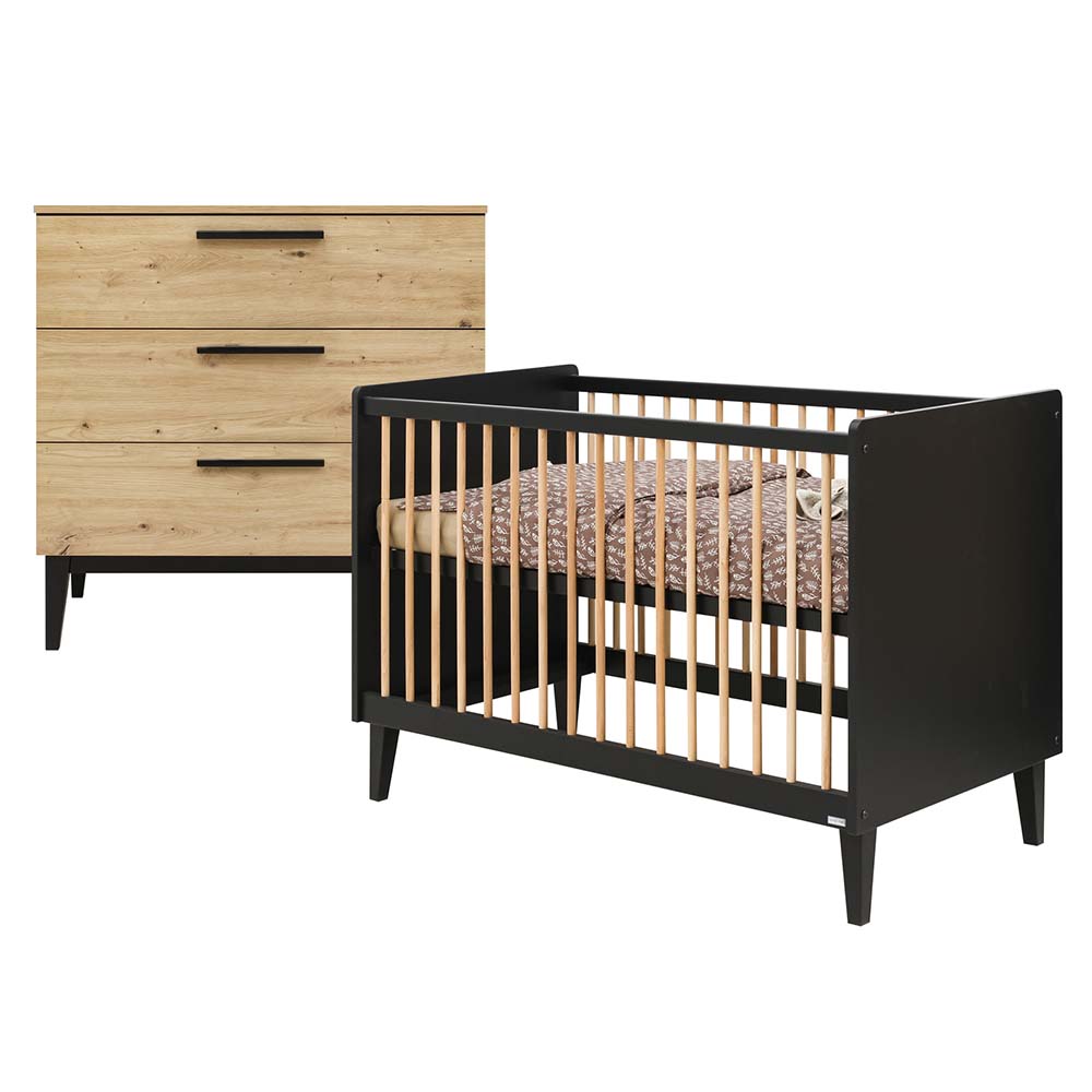 ToiToiKids Xem Babykamer 2-Delig – Matt Black/Oak