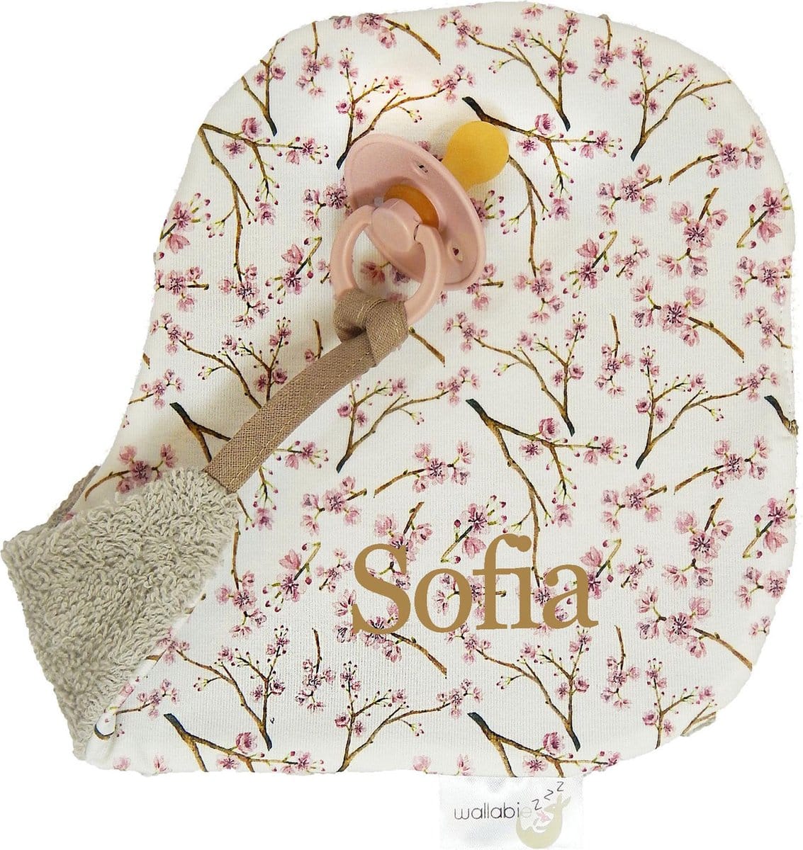 Specificaties: Wallabiezzz Speendoekje met naam – gepersonaliseerd kraamcadeau – Baby cadeau – Roze