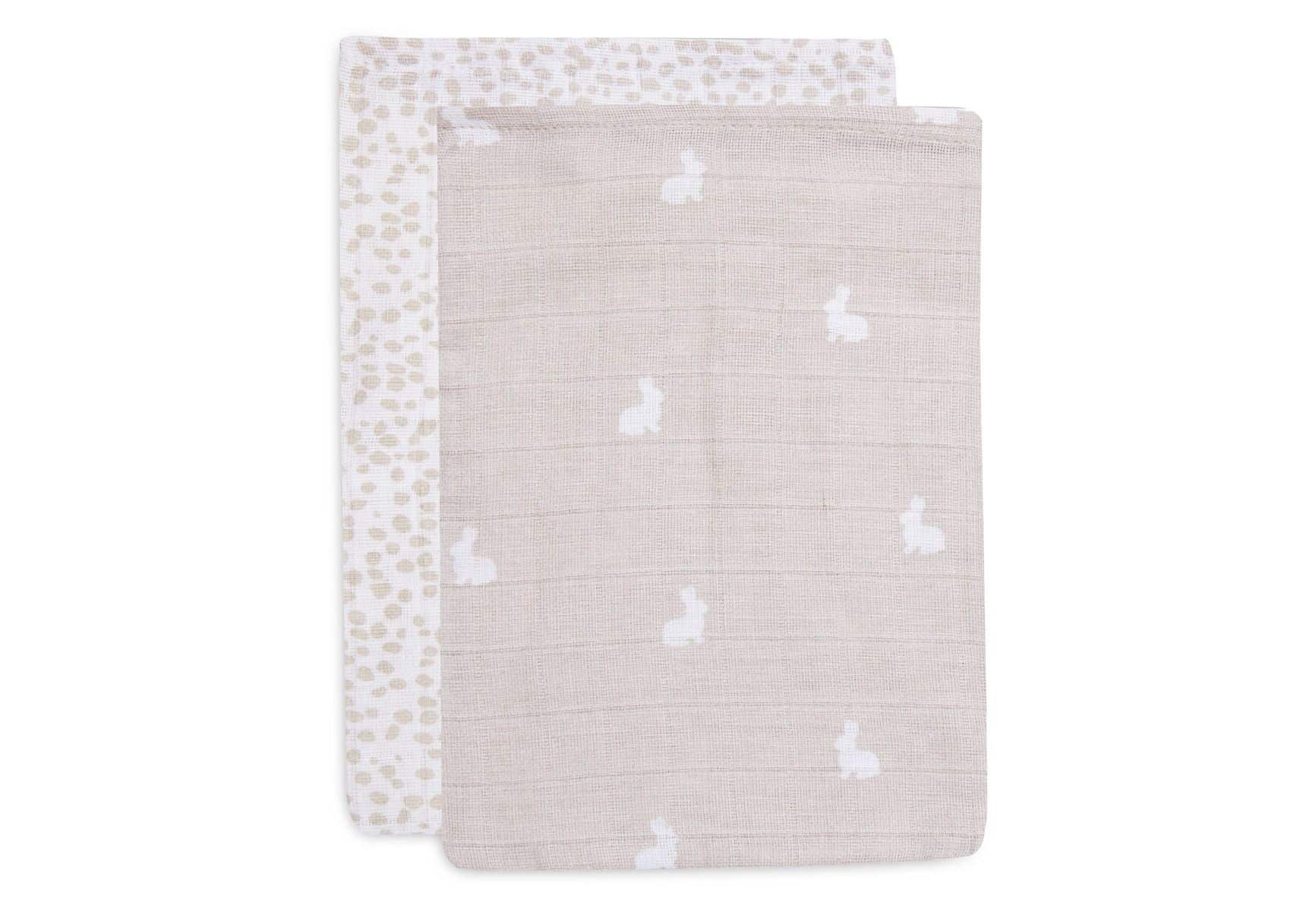 Washandjes Jollein Hydrofiel Dotted&Rabbit Nougat 2st